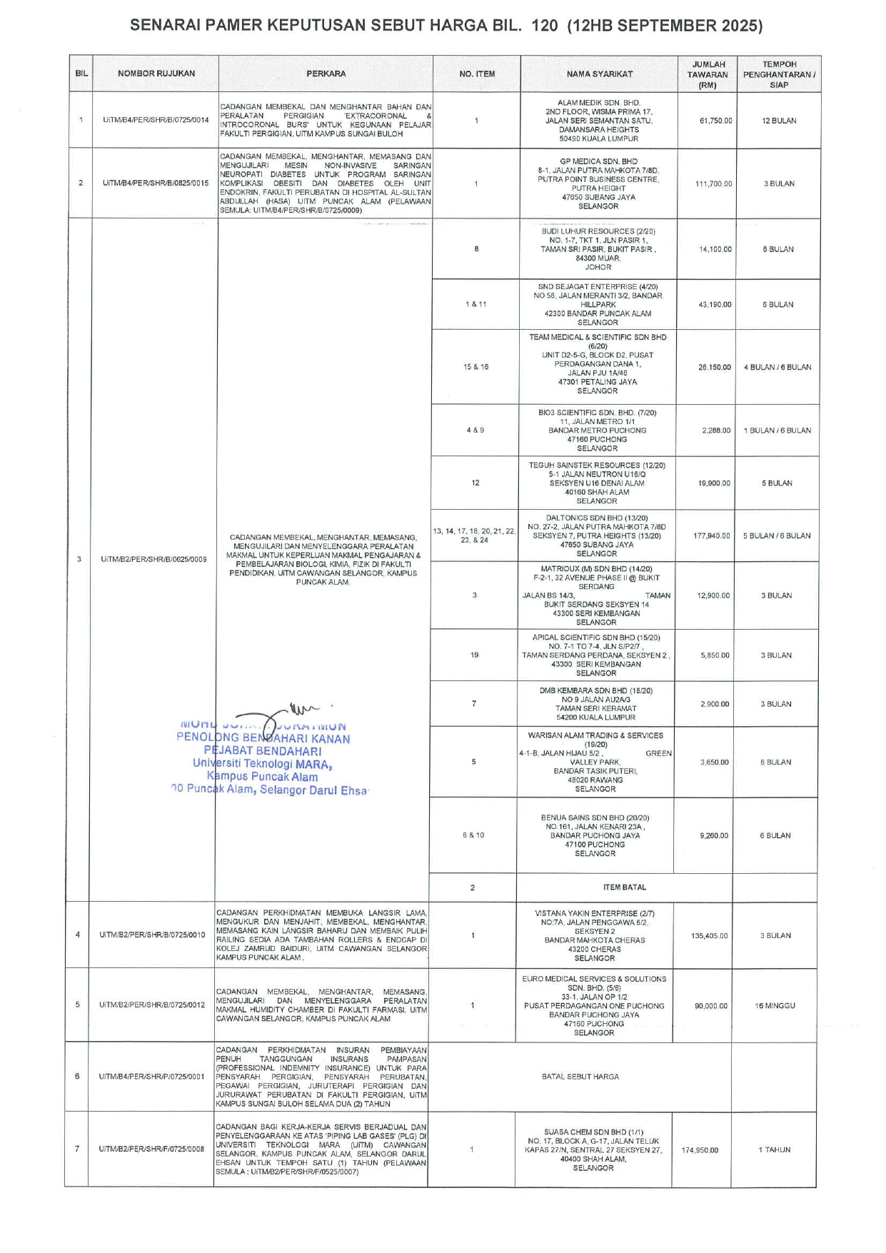 Kenali Kami SENARAI PAMER KEPUTUSAN SEBUT HARGA BIL. 120 (12HB SEPTEMBER 2025) Next article: SENARAI PAMER KEPUTUSAN SEBUT HARGA BIL. 116 (22HB MEI 2025) Seterusnya
