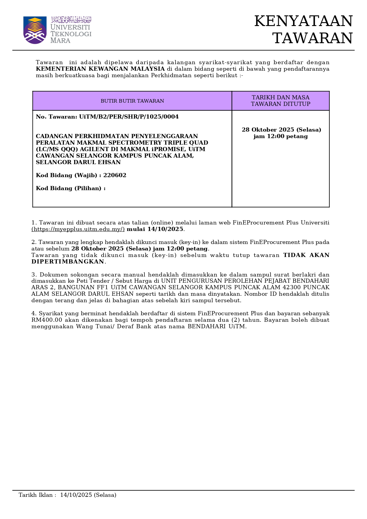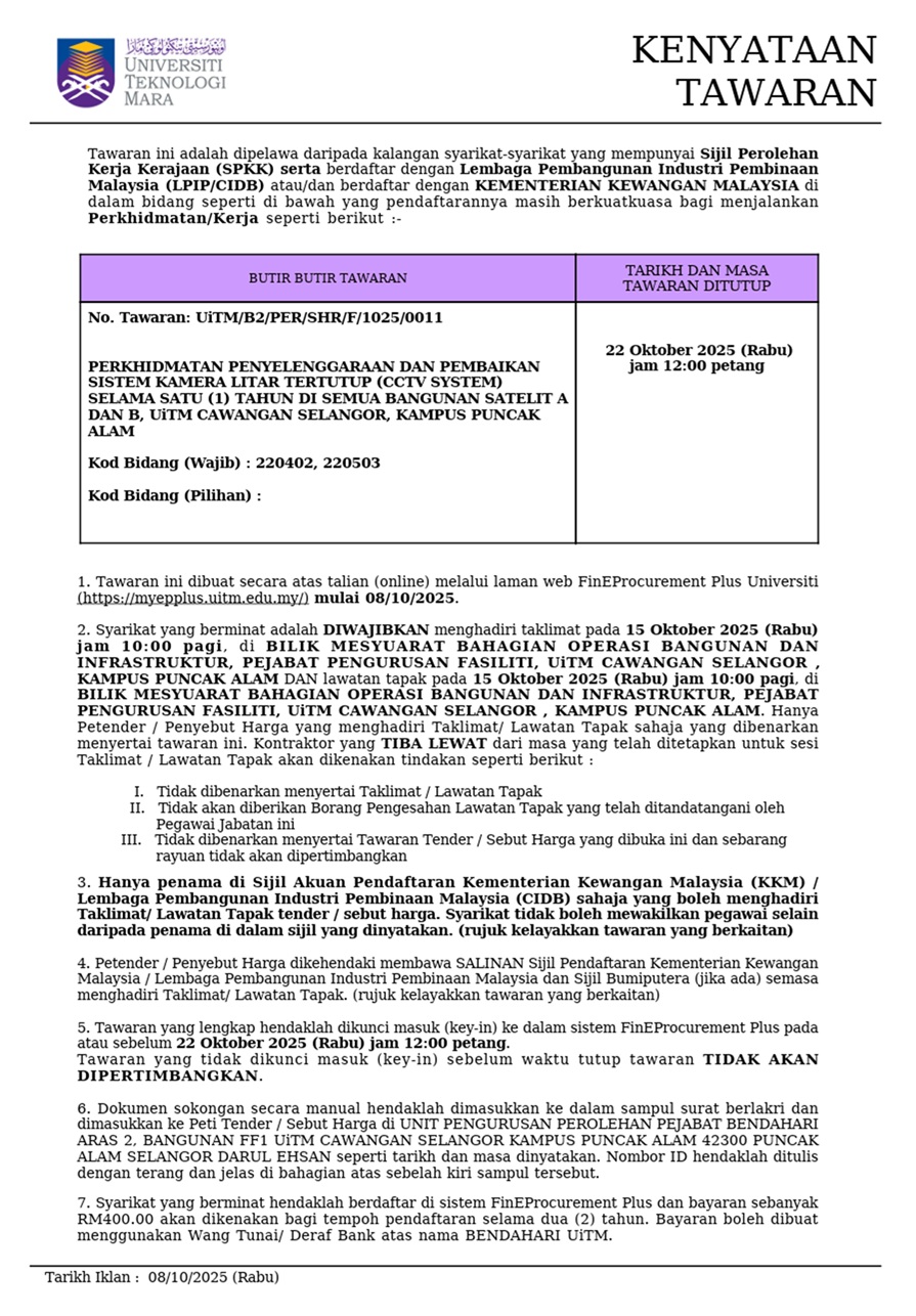 Universiti Teknologi MARA Cawangan Selangor Kampus Puncak Alam, 42300 Bandar Puncak Alam, Selangor, Malaysia